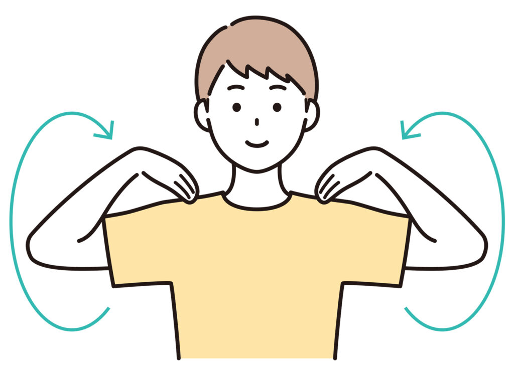 肩に指を置いて、大きな円を描くように10回まわすだけ。
